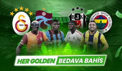 Beşiktaş, Fenerbahçe, Galatasaray veya Trabzonspor’dan birini seçip spor bahislerinde tek seferde 1.000 TL’lik oyna, Beşiktaş veya Fenerbahçe’nin her golünden 1.000 TL, Galatasaray’ın her golünden 750 TL ve Trabzonspor’un her golünden 1.500 TL Bedava Bahis al!